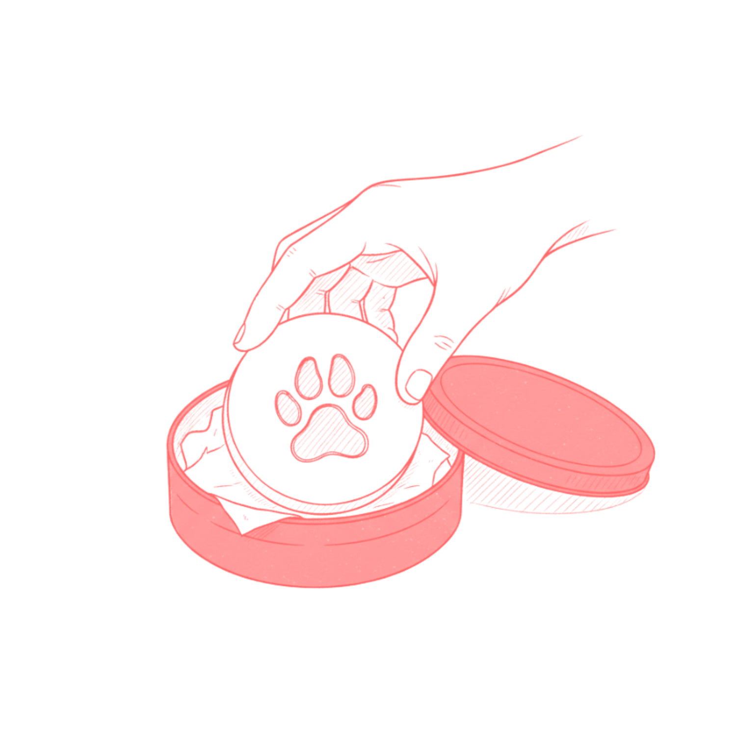 Remove material from tin. Firmly press your pet's paw into the center of the impression material to create a distinct impression. It should be as clear as if your pet had left a paw print in the sand on the beach.