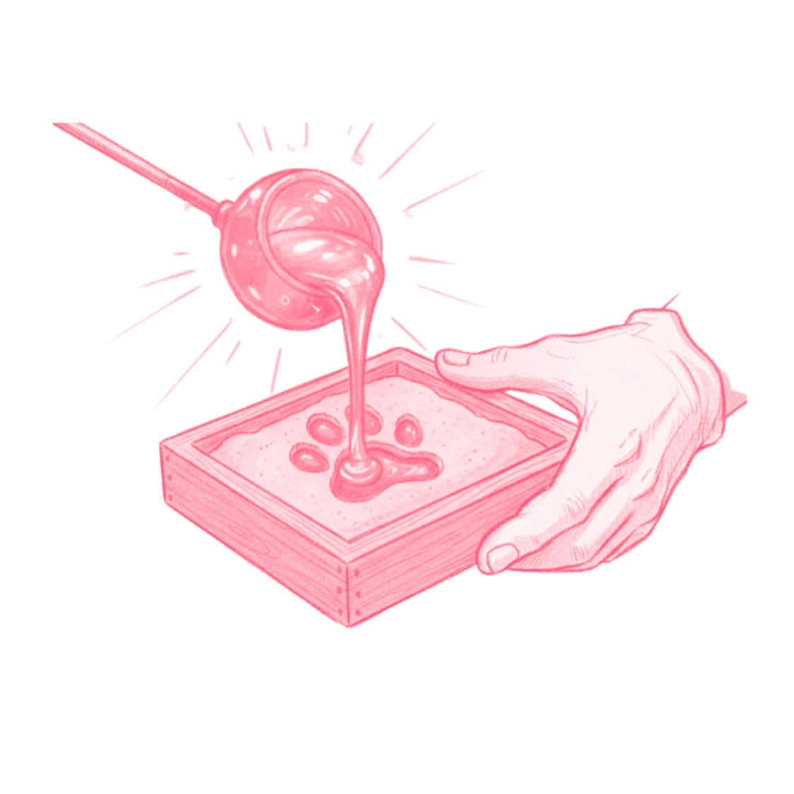 Your impression acts as a blueprint for crafting a sand mold, which our team subsequently fills with molten glass.